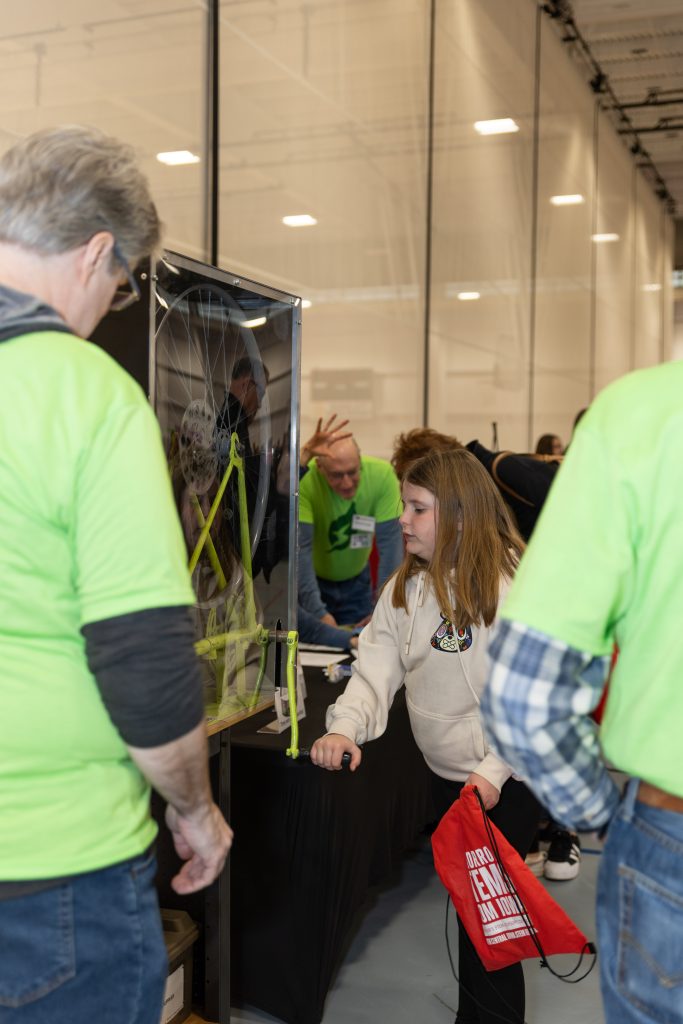Our booth focused on something simple but powerful- showing how energy is created. The highlight was our hand-crank “wheel,” where kids could generate their own electricity and watch lights turn on as they spun. It didn’t take long for the line to form.